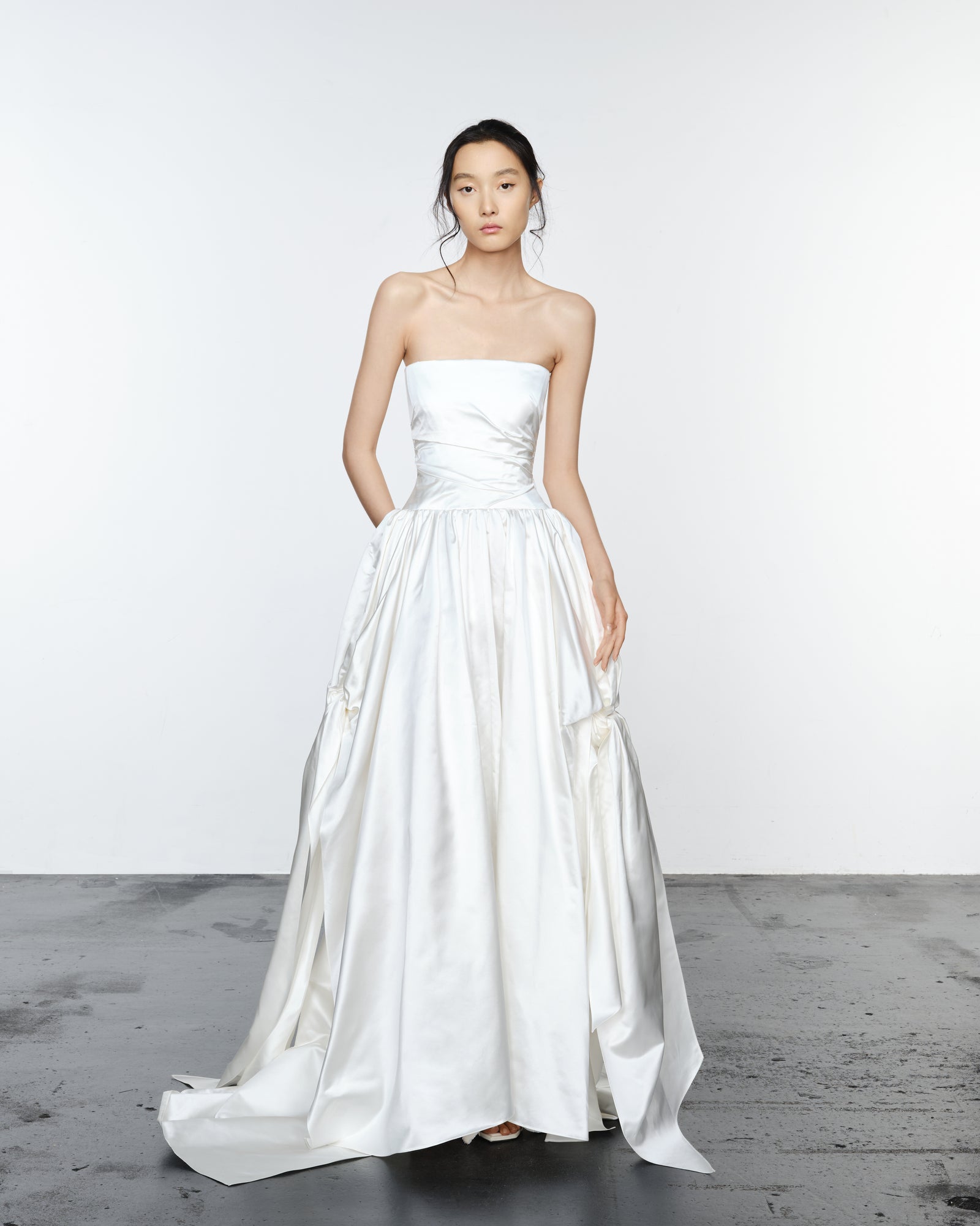 The Bidda Dress, part of our classic collection, is a classic silhouette redefined with signature WED drapery in the corset bodice, a dropped waist, and bow side details.